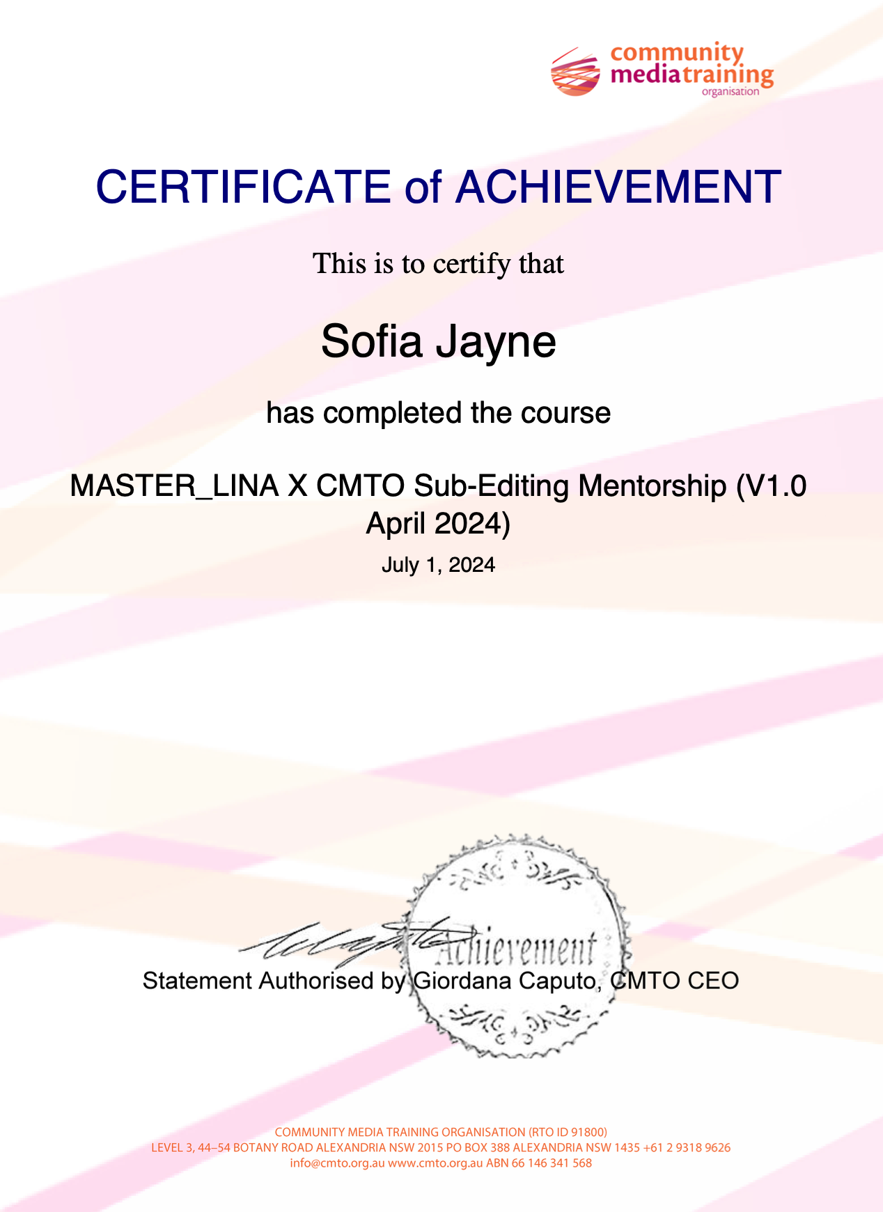 SBS Audio, Sydney | October - November 2024 (two weeks)